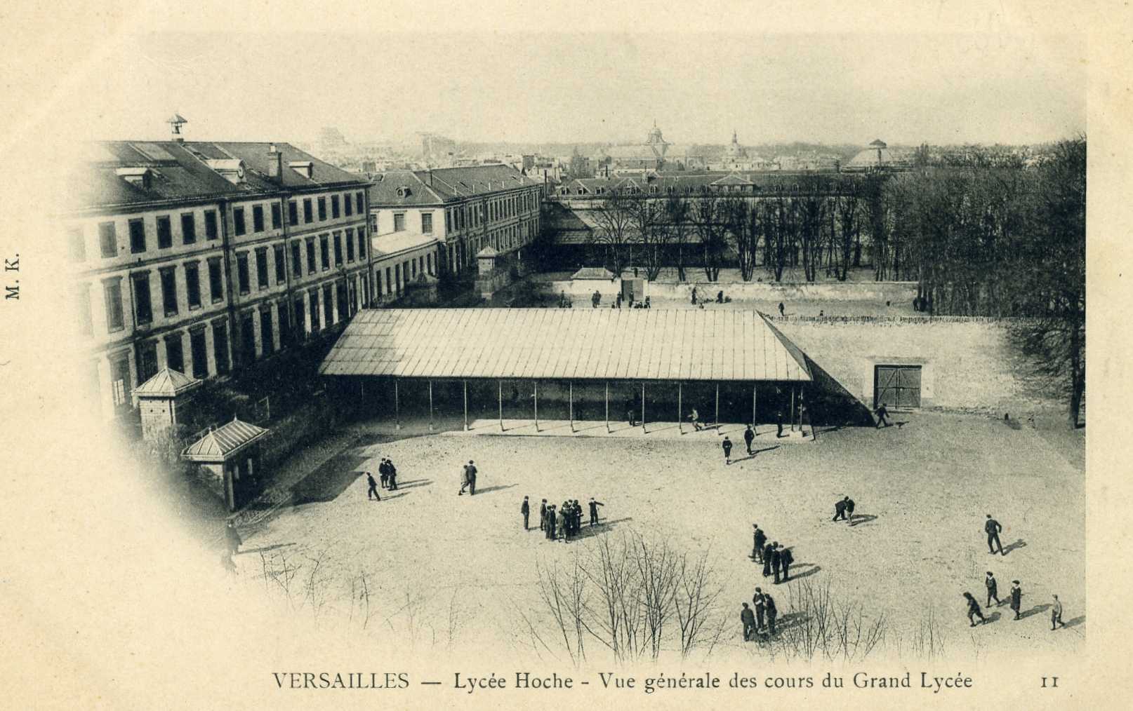 Non écrite ; dos réservé à l’adresse ; carte animée ; les 3 cours de récréation, le préau (lieux disparus). Vue prise du haut du petit lycée ; au premier plan la cour des grands.