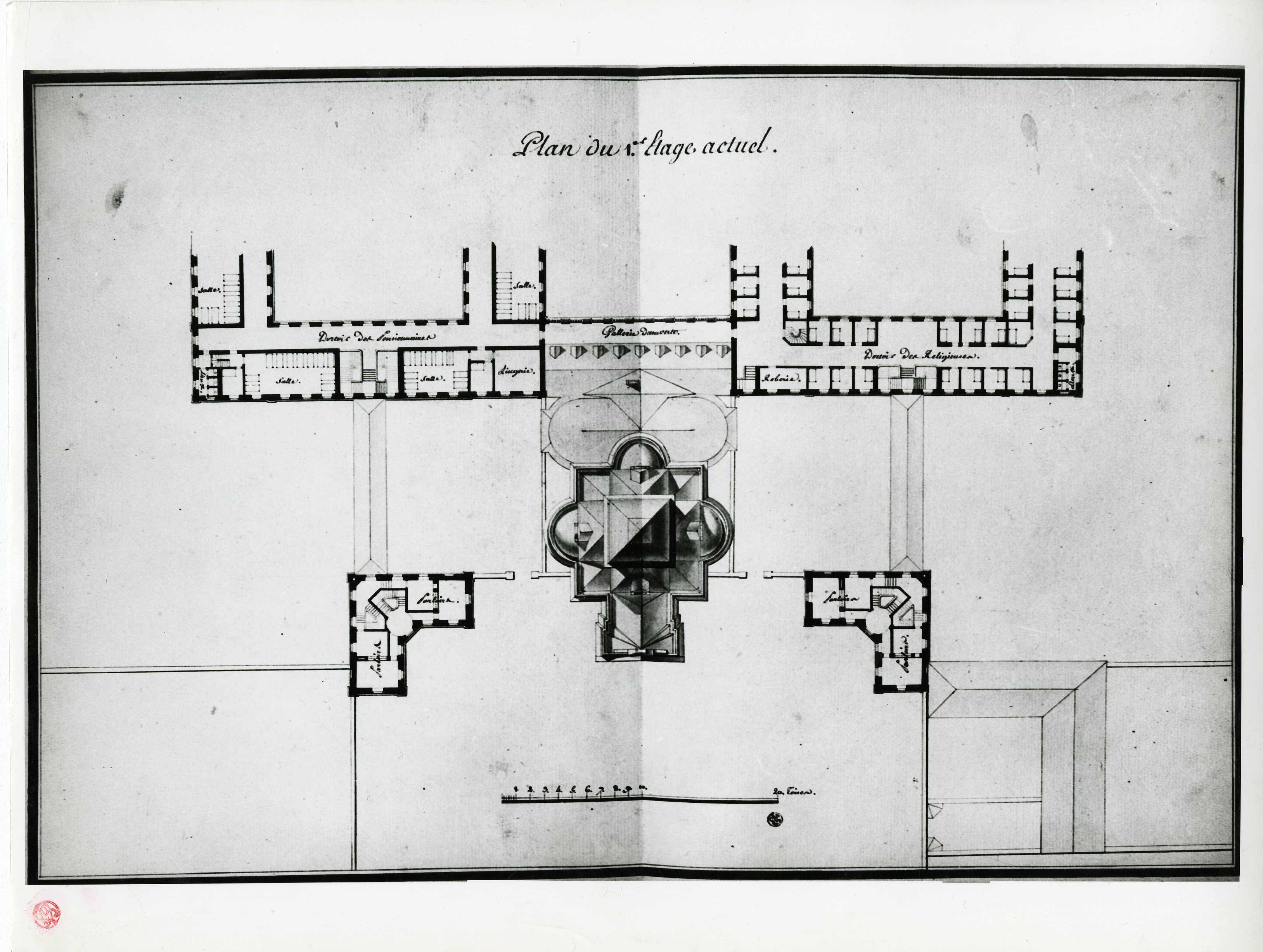 Certains détails qui figurent sur les coupes n'ont finalement pas été suivis (faute de budget suffisant) comme les oeils-de-boeuf qui auraient dû servir d'ouvertures de la coupole de la chapelle.