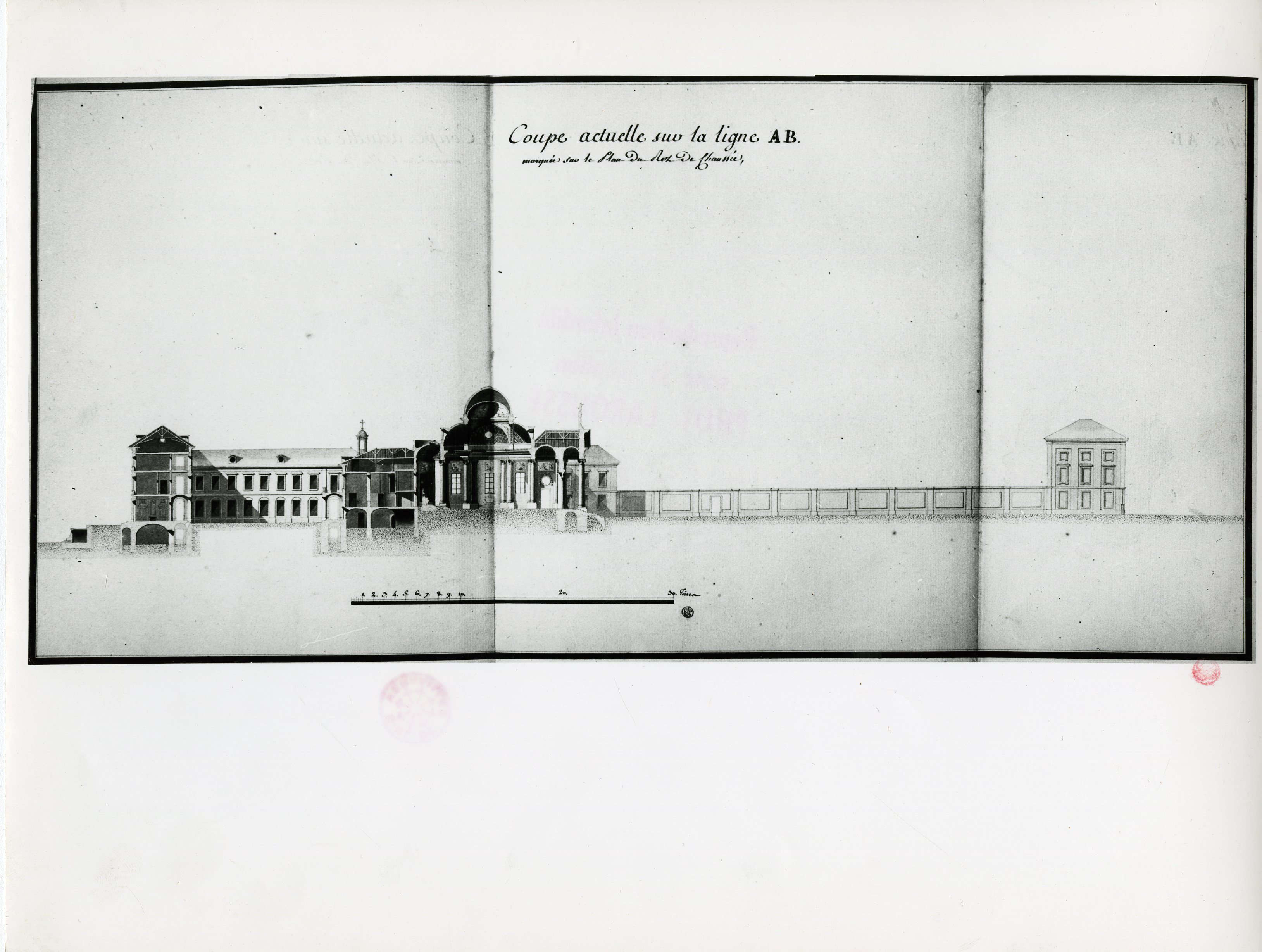 Certains détails qui figurent sur les coupes n'ont finalement pas été suivis (faute de budget suffisant) comme les oeils-de-boeuf qui auraient dû servir d'ouvertures de la coupole de la chapelle.