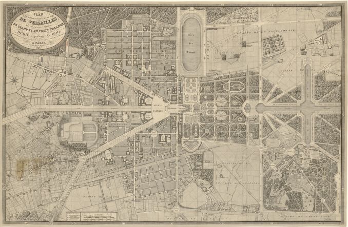 Le quartier des Prés est en pleine construction. Le boulevard de la Reine délimite le terrain au Nord (en bas de la carte) en bordure duquel des lotissements sont aménagés. Le quartier de Clagny n'existe pas encore et la rue de Provence est dénommée ainsi à cette époque.